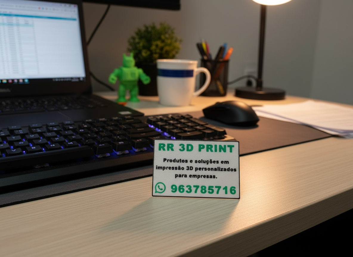 Surpreenda os seus clientes e parceiros com cartões de visita impressos em 3D, personalizados com as cores, logotipo e mensagem da sua empresa. Desenvolvemos cartões inovadores e impactantes, ideais para destacar o seu negócio em eventos, reuniões e ações de networking. Dê forma à sua identidade corporativa com um cartão único, feito à medida das suas necessidades. Peça já o seu modelo personalizado!