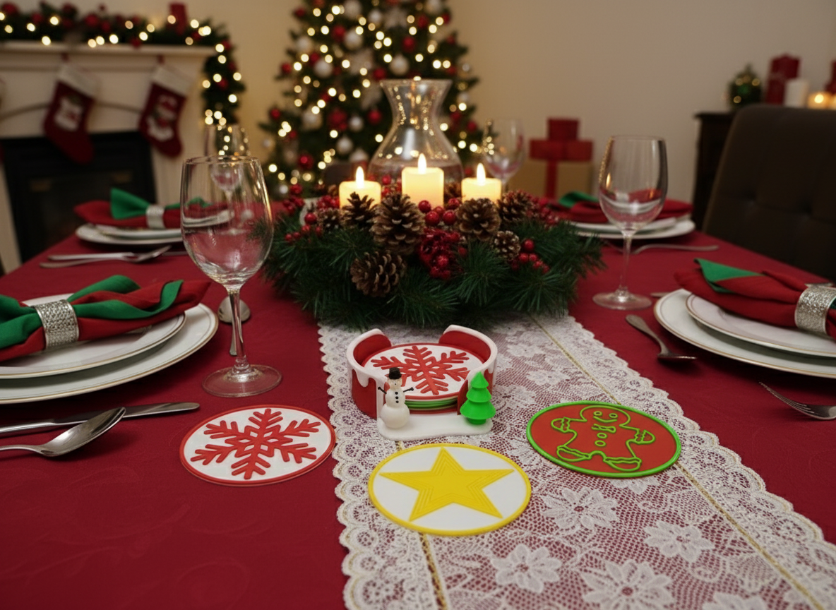 Dá um toque especial à tua mesa de Natal com este conjunto de bases de copos natalícias impressas em 3D! 🎄☃️