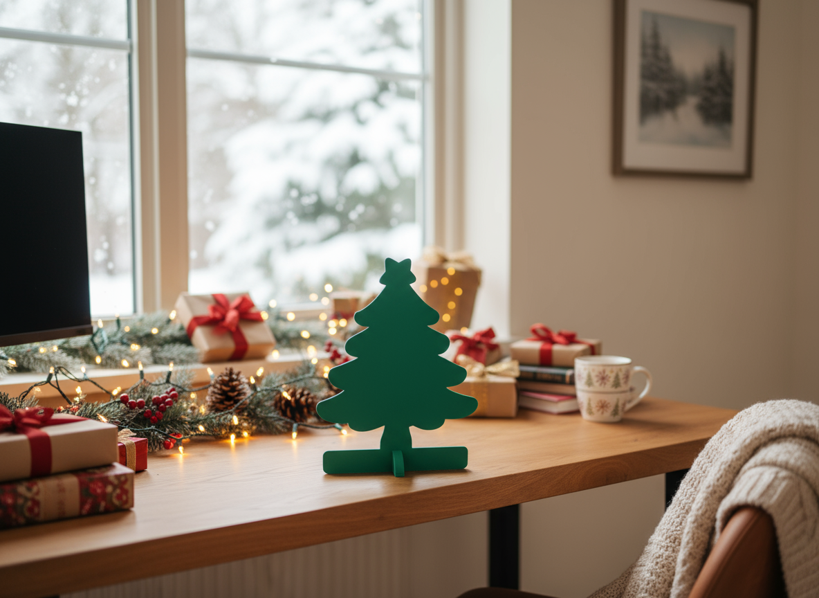 Celebra o espírito natalício com esta árvore de Natal impressa em 3D, perfeita para mesas, salas ou espaços de trabalho! O design moderno inclui uma estrela no topo e uma base robusta para estabilidade. Disponível em versão colorida com detalhes festivos e a mensagem FELIZ NATAL🌟. Ideal para oferecer ou decorar o teu espaço com ambiente acolhedor.