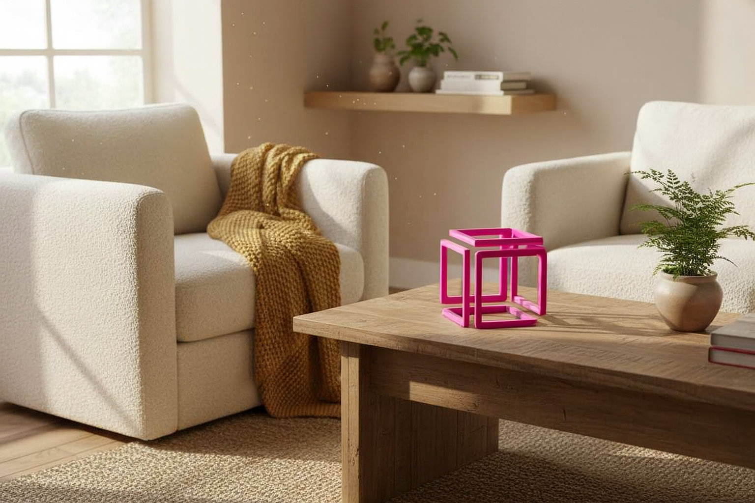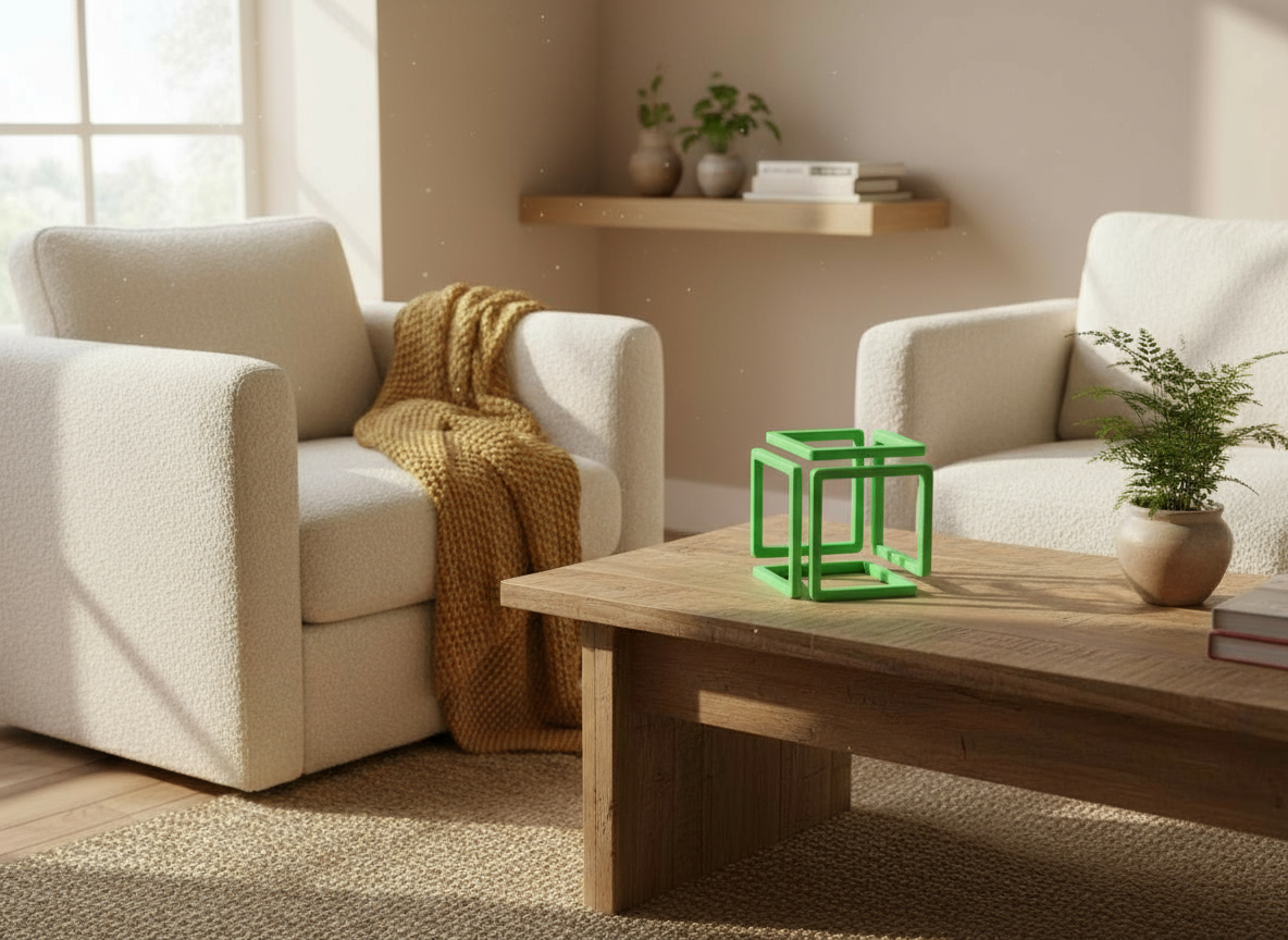 Este objeto é ideal para dar um toque moderno a secretárias, prateleiras ou salas de estar. O design desafia a perceção visual, criando um efeito 3D elegante e sofisticado. É perfeita como peça de decoração contemporânea, para quem gosta de arte matemática ou procura presentes originais para amigos e familiares.