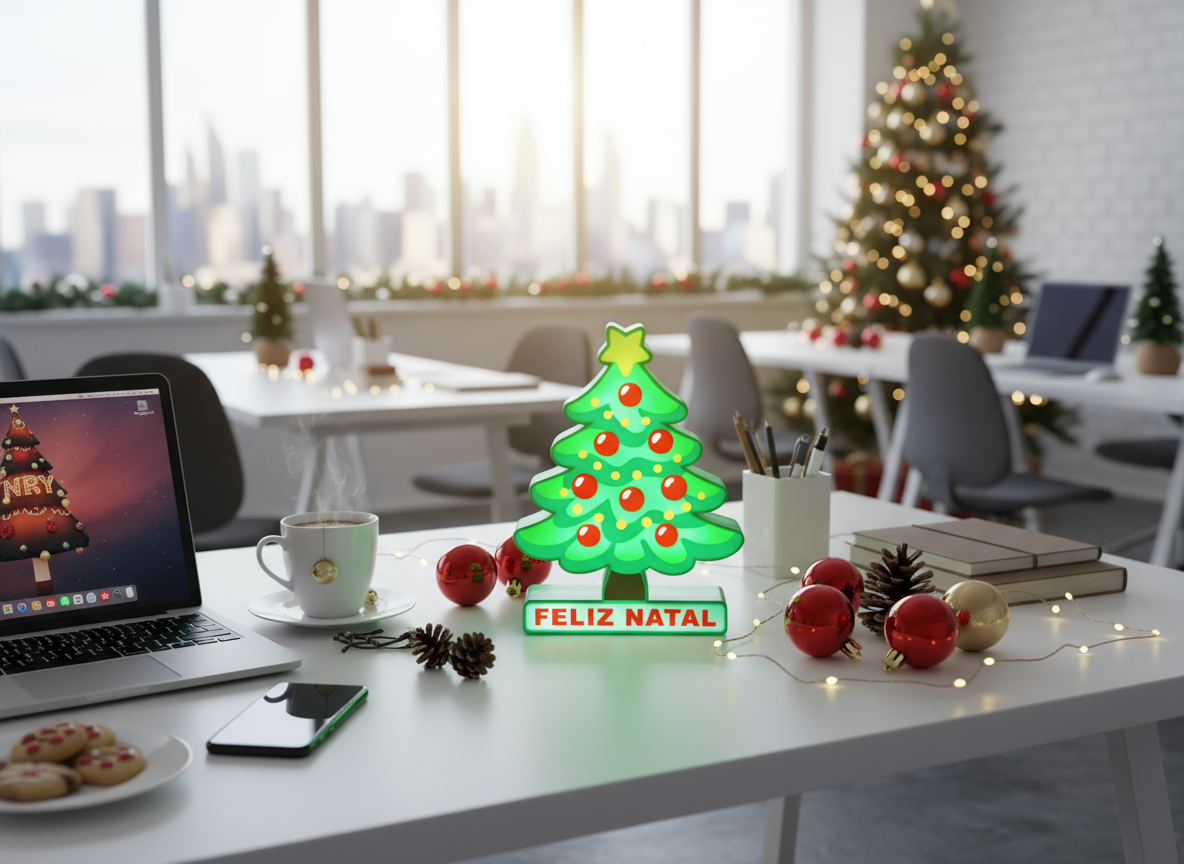 Com 17cm de altura, esta peça decorativa é perfeita para iluminar qualquer cantinho da casa ou do escritório. O design divertido traz a mensagem “FELIZ NATAL” e a árvore acende com um suave brilho verde, criando um ambiente acolhedor e festivo.