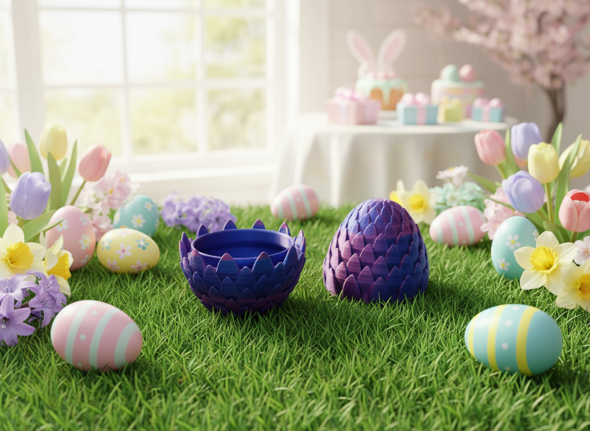 Ovo de Páscoa inspirado em escamas de dragão 🐲, com um design que se abre ao meio e revela um compartimento perfeito para guardar doces ou pequenas surpresas🎁. Ideal para decorar ambientes festivos ou para surpreender numa caça aos ovos cheia de magia e criatividade!🌷🥚