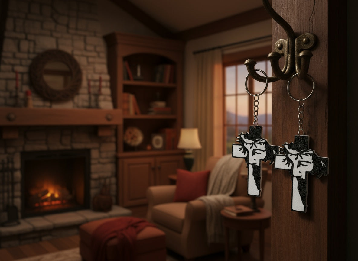 Porta-chaves cruz 3D com silhueta de Jesus Cristo, ideal para quem deseja expressar fé no dia a dia 🙏✨. Produzido em impressão 3D com acabamento detalhado em preto e branco, este acessório combina resistência e leveza, perfeito para chaves ou mochilas.